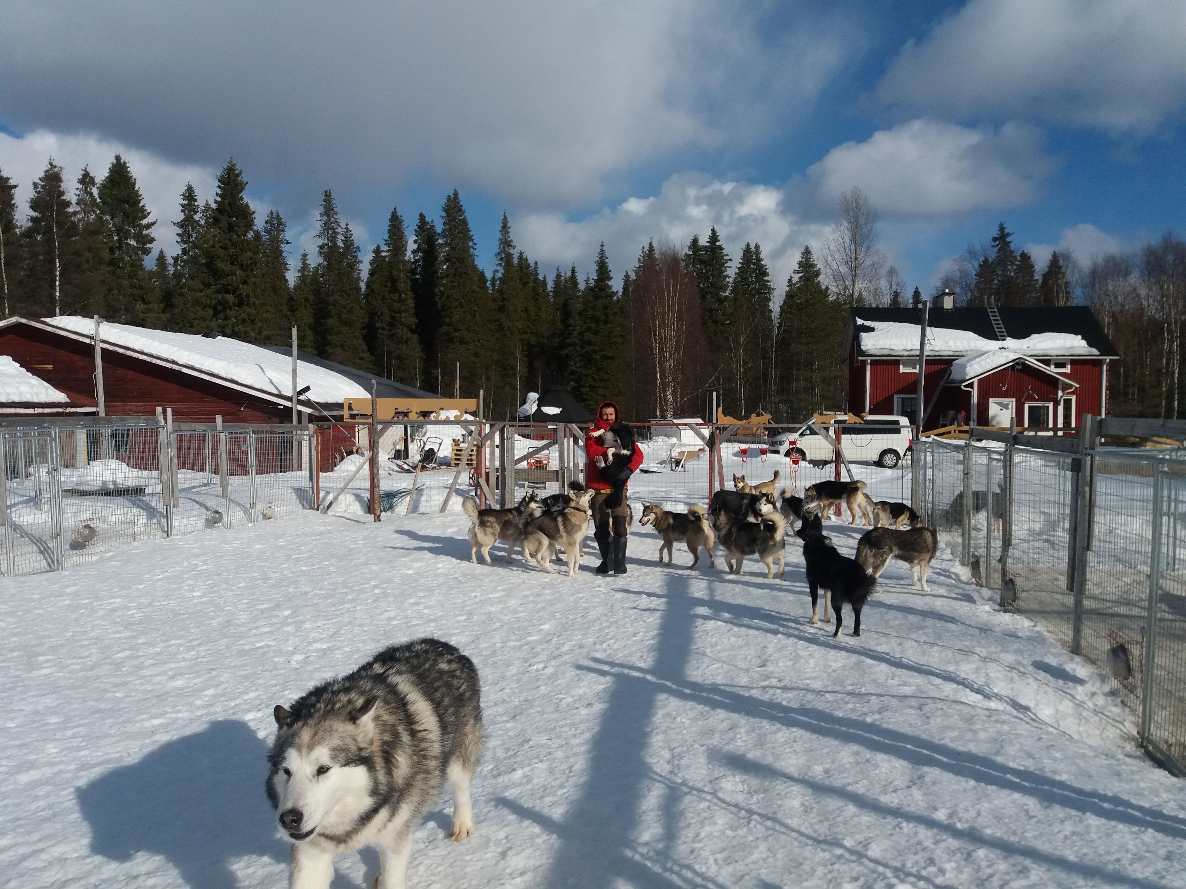 Huskysafari 5 km, suomalainen grilli, porojen tapaaminen, vaellus järvelle, pilkkiminen, päiväretki.