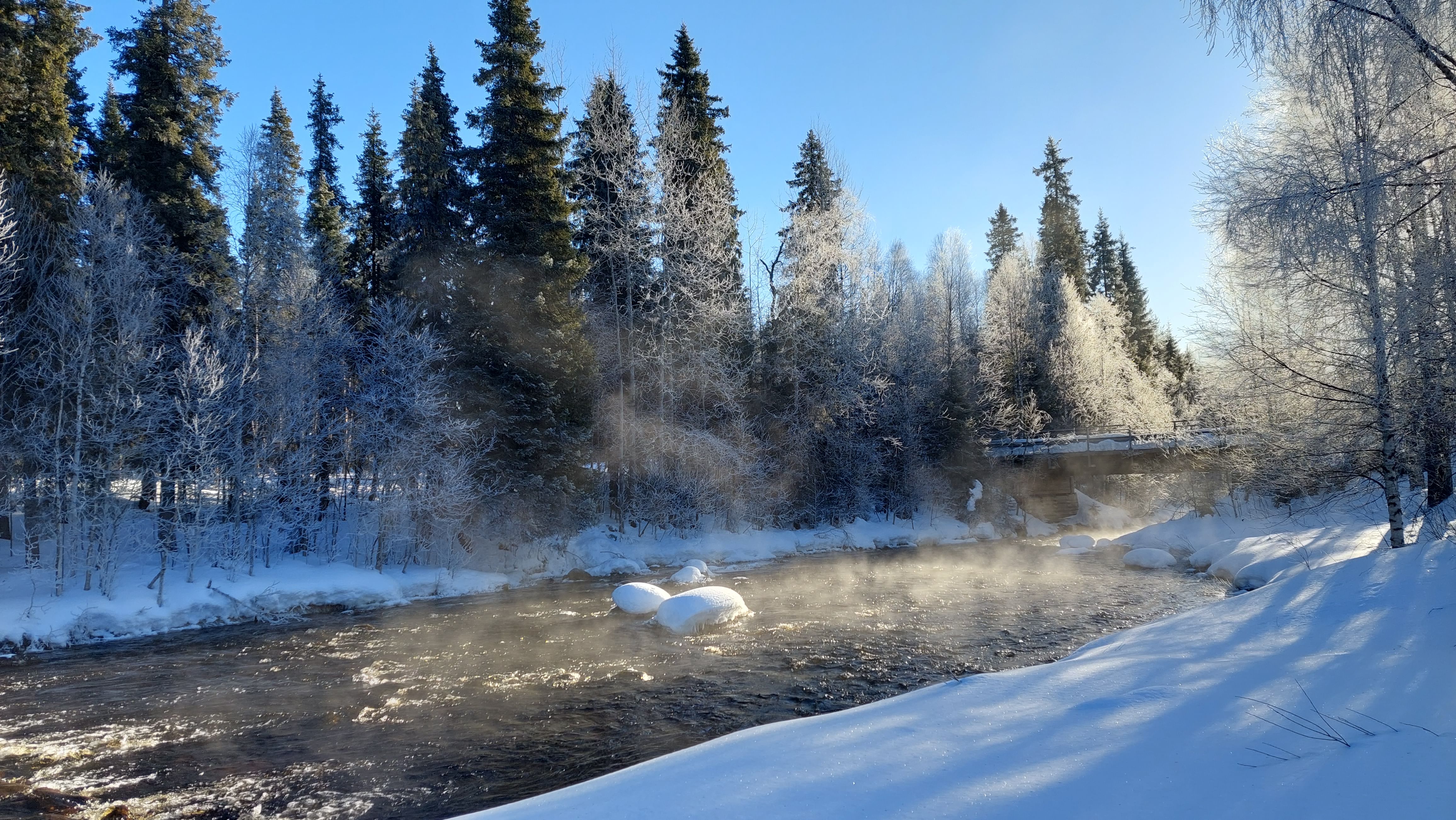 Olemme villissä Lapissa, noin 50 minuutin päässä Rovaniemen keskustasta, 7 km päässä Vanttauskosken kylästä, joen varrella.
