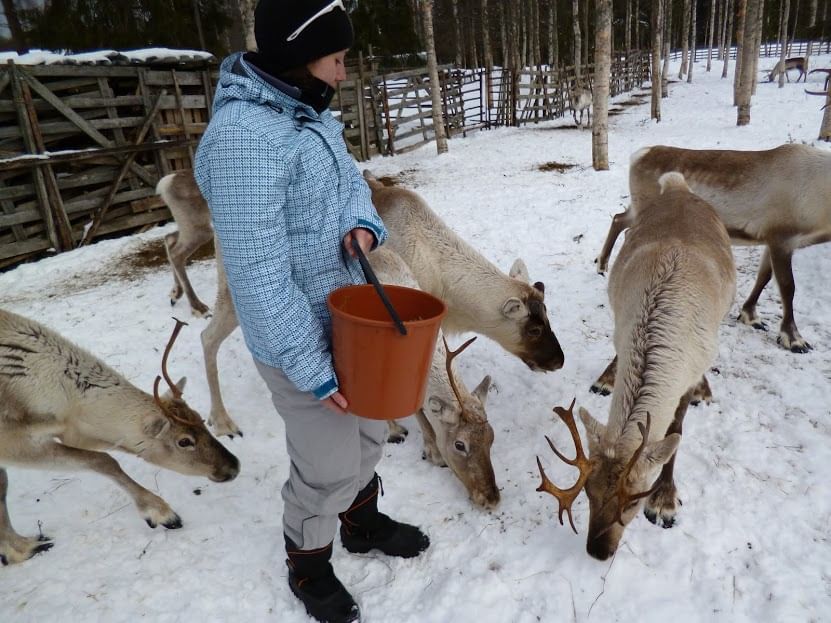 Palaa maatilalle, jossa voit nauttia kuuman juoman chaletissa; sitten voit tavata Lapin symbolisen eläimen: poron.